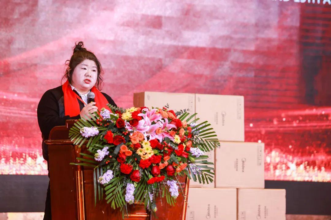 奉天集团董事长、甲冉生品牌创始人于红为晚会致辞,希望大家继续积极进取,保持信心,共创甲冉生事业的精彩明天;希望甲冉生的家人们在晚会中放声高歌,展示自己精彩的节目;于总和全场人员共同举杯,共同祝福甲冉生再攀发展新高峰,共创精彩新未来!