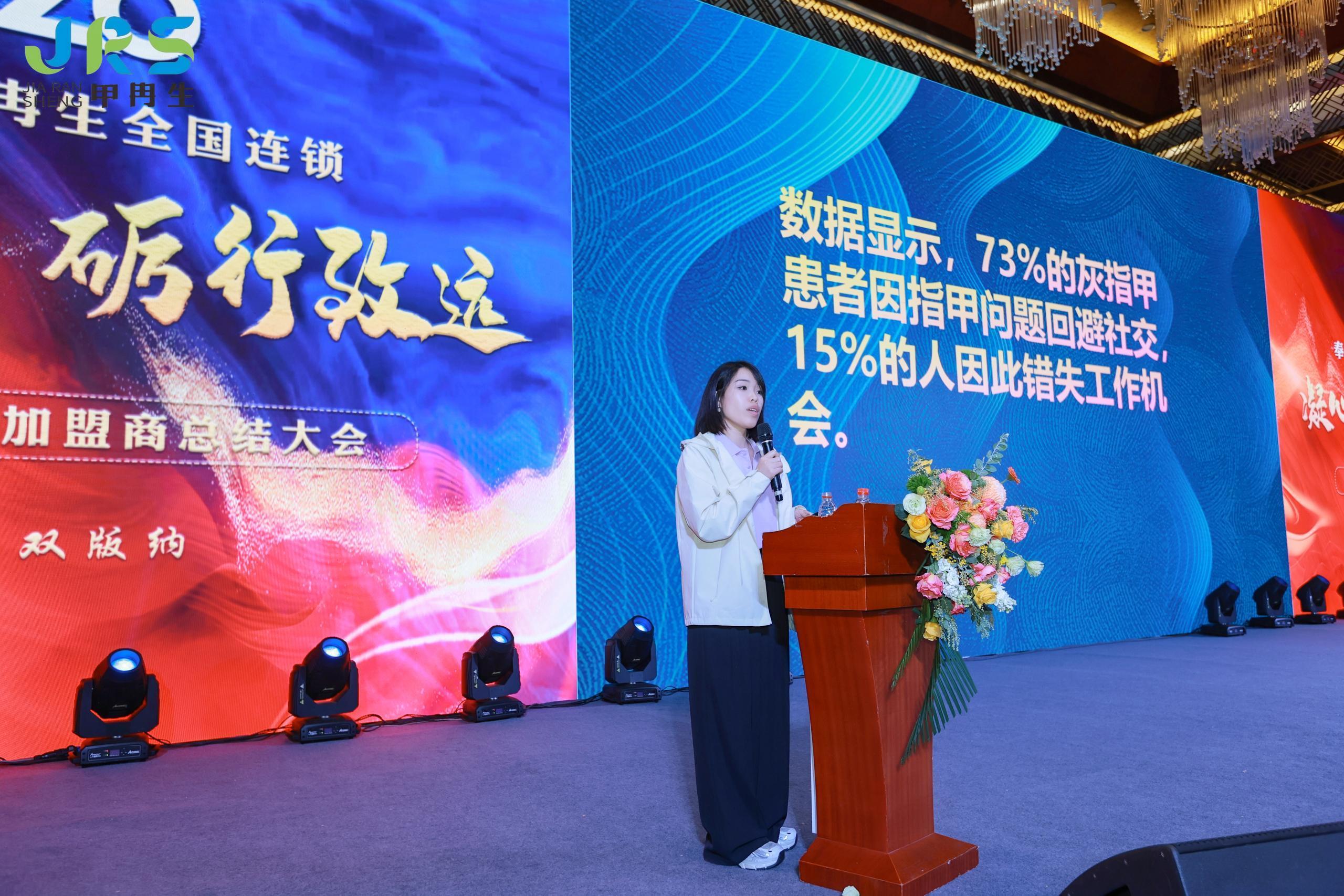 于总在致辞中回顾了甲冉生品牌的发展历程,并指出我们要始终满含对甲冉生品牌、对产品、对手足、皮肤护理这项事业的热爱,做健康事业的优秀传递者。甲冉生品牌一直执着于对“高品质”的坚守,全国连锁门店也要坚持对高品质和服务成效的高标准要求,帮助更多人解决手足和皮肤问题。于总提出,手足、皮肤问题涵盖广泛,表现各种各样,有的疑难问题修护要求更高,因此我们要不断创新,坚持研发安全有效的中药草本新产品,来帮助广大顾客摆脱各种困扰,享有健康美好的生活。
